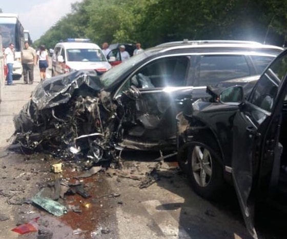 По их данных, в ДТП из кортежа президента попали три автомобиля — два внедорожника Volkswagen Touareg и микроавтобус Volkswagen Transporter службы безопасности главы государства.