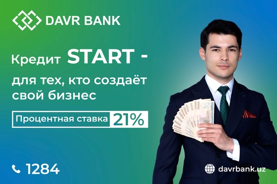 Чаще всего многие деловые люди сталкиваются со сложностями в поисках надежного банка-кредитора. Вы молодой предприниматель, на руках которого есть разработанный бизнес-план? В этом случае Davr Bank станет хорошим партнёром, ведь именно для начинающих бизнесменов банк разработал кредит START. Он выдаётся юридическим лицам, намеревающимся открыть свою деятельность. Льготный период его составляет 3 месяца, а количество выделенных средств - 300 миллионов наличными или денежным переводом! Но это далеко не всё, более подробную информацию можно узнать у экспертов банка.