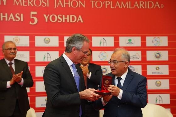 Кульминационным событием стала церемония вручения зарубежным членам Всемирного Общества памятных знаков к 30-летнему юбилею независимости Узбекистана, а также сертификатов на получение 35 томов книг-альбомов серии «Культурное наследие Узбекистана в собраниях мира».