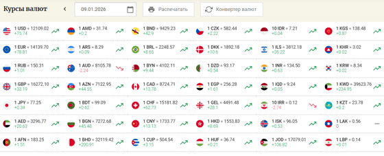 Курс доллара составил 12 109,02 сумов (+75,74), фунта 16 272,10 сумов (+33,19), евро 14 139,70 сумов (+78,81), а рубля 150,31 сумов (+1,01).