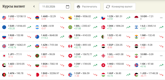 Курс доллара составил 12 158,13 сумов (-33,12), фунта 16 362,41 сумов (+118,79), евро 14 166,65 сумов (+55,28), а рубля 153,98 сумов (-0,22).