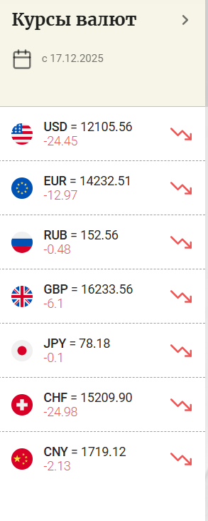 Курс доллара составил 12 105,56 сумов (-24,45), фунта 16 233,56 сумов (-6,1), евро 14 232,51 сумов (-12,97), а рубля 152,56 сумов (-0,48).