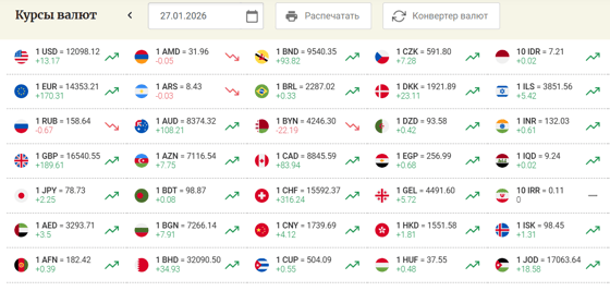 Курс доллара составил 12 098,12 сумов (+13,17), фунта 16 540,55 сумов (+189,61), евро 14 353,21 сумов (+170,31), а рубля 158,64 сумов (-0,67).