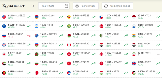 Курс доллара составил 12 128,02 сумов (+29,9), фунта 16 615,39 сумов (+74,84), евро 14 419,00 сумов (+65,79), а рубля 158,52 сумов (-0,12).