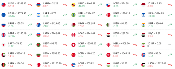 Курс доллара составил 12 142,10 сумов (-52,11), фунта 16 140,49 сумов (+27,06), евро 14 079,98 сумов (+95,66), а рубля 150,53 сумов (+0,56).