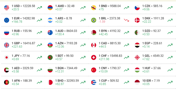 Курс доллара составил 12 228,58 сумов (+20,5), фунта 16 416,87 сумов (+221,63), евро 14 282,98 сумов (+166,78), а рубля 155,96 сумов (+0,96).