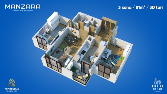 Трехкомнатные квартиры в жилом комплексе Manzara, общей площадью в 81 кв.м. – это один из наиболее популярных вариантов квартир, которые пользуются высоким покупательским спросом.