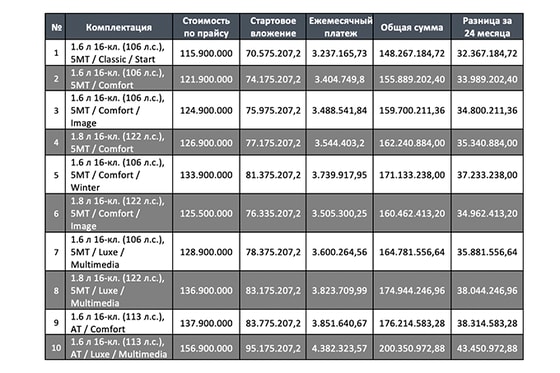 Комплектация «Classic / Start» реализуется в лизинг с предоплатой от 13,5%