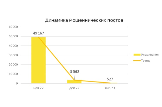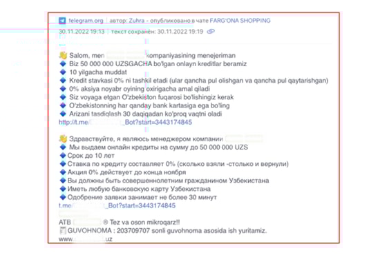Когда Ledokol Analytics начали сотрудничать с Банком, было обнаружено, что в течение одного месяца в Интернете было опубликовано около 49 тысяч постов с предложением получить льготный кредит от Банка. Большинство из них были размещены в Telegram.