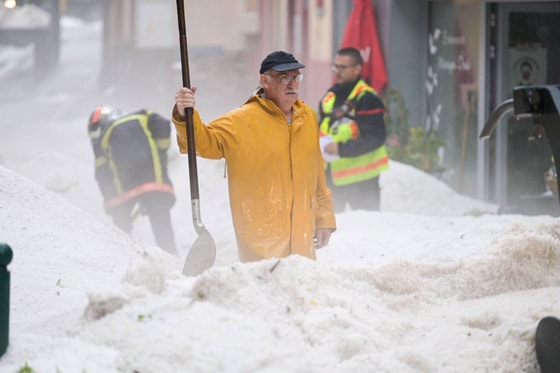 Жителям французского города Пломбьер-ле-Бен пришлось снегоочистителями и лопатами расчищать улицы города после того, как их покрыл толстый слой града. Об этом сообщает UNN.