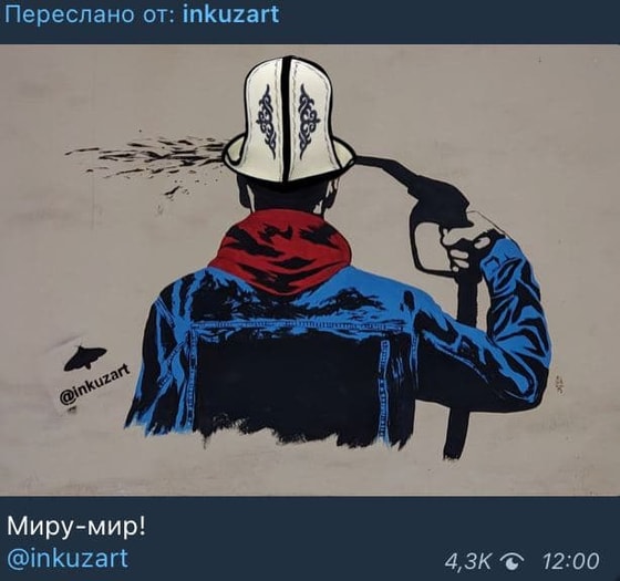 Накануне он снова опубликовал себе в Instagram-аккаунт это же граффити, только уже перерисованное с отсылкой на ситуацию, которая происходит в Казахстане.
