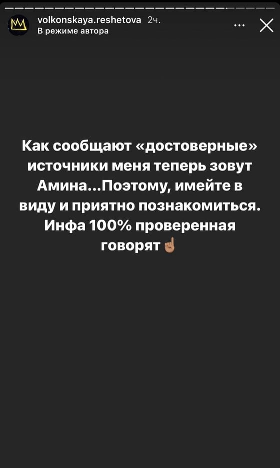 Как сообщают «достоверные» источники, меня теперь зовут Амина. Имейте это в виду и приятно познакомиться. Инфа 100% проверенная говорят,