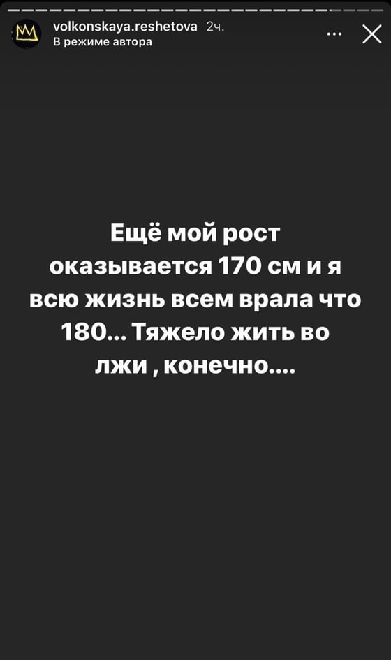 Еще мой рост оказывается 170 см и я всю жизнь всем врала, что 180. Тяжело жить во лжи,
