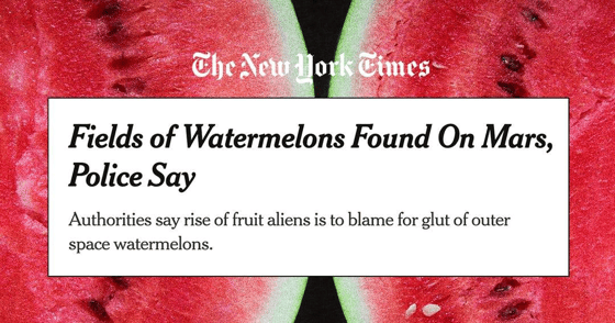 Недавно на сайте The New York Times появилась статья о том, что полиция нашла на Марсе арбузные поля. Менее чем за час статья была удалена, но архивная копия осталась, пишет Esquire.
