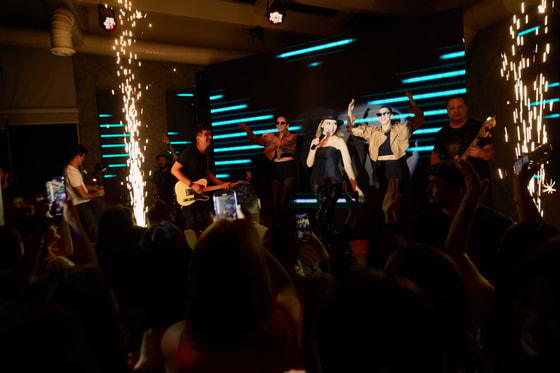 Как только гости собрались в помещении, на террасе звучали песни в живом исполнении. Позже на сцену вышла узбекская группа Sahar. Гости услышали их популярную песню Ayol, которая вышла в апреле этого года.