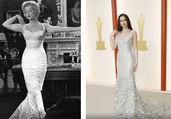 Знаменитость, которая исполнила главную роль в фильме «Блондинка», появилась в платье Louis Vuitton, украшенное драгоценными камнями, на «Оскаре». В похожем платье снялась Мэрилин в фильме «Принц и танцовщица».