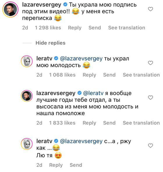 20 лет терплю тебя. Как же быстро летит время! Сколько всего было, сколько еще будет, — подписала ролик Кудрявцева, но нарвалась на замечание Лазарева.