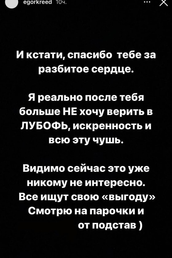 Егор дал подсказку своим поклонникам, написав, что пишет эти слова, потому что понимает некого блогера, который поделился своими эмоциями в сети.