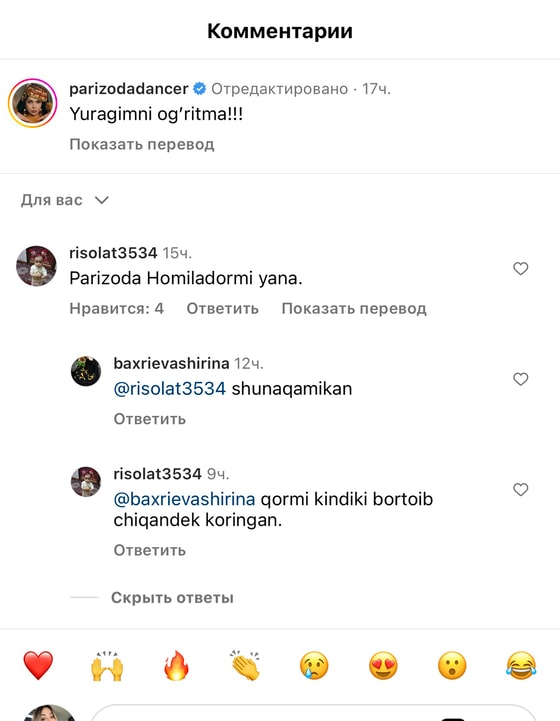 Накануне узбекская танцовщица Паризода поделилась новым роликом на своей Instagram-страничке. К слову, публикация артистки привлекла внимание многих пользователей.