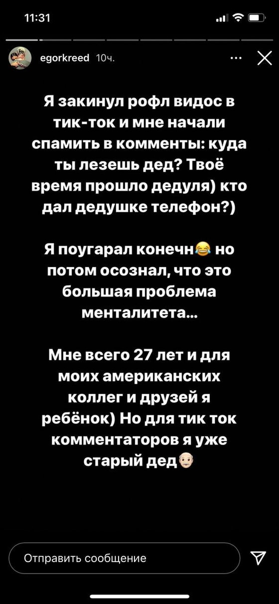 Егор по поводу этого решил высказаться в своём Instagram. Он считает, что в этом во всем виноват менталитет, который прививают детям.