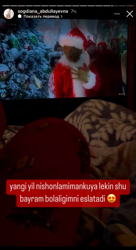 Знаменитость опубликовала Stories, показав, что смотрит новогодний фильм «Гринч».