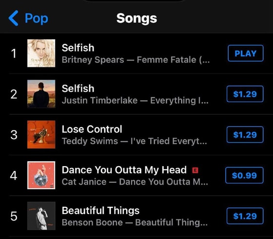 Трек Тимберлейка называется Selfish, так же, как и одна из песен Бритни 13-летней давности.