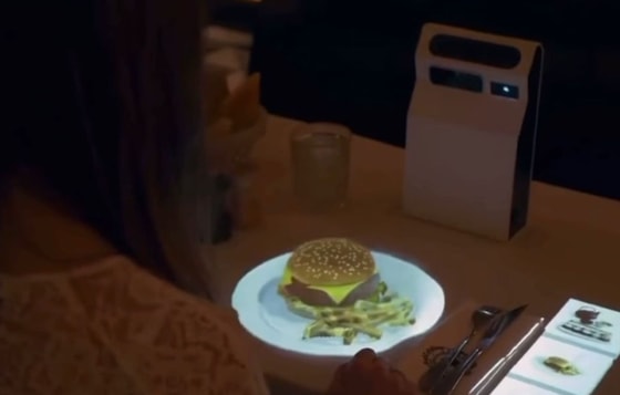 Оказалось, американская компания HoloLamp создала первое устройство дополненной реальности без очков, создающее оптические 3D-иллюзии. На столе размещают проектор, а клиенты «крутят» изображения, разворачивающиеся на скатерти. Так, посетители могут выбирать и просматривать пункты меню прямо на столе.