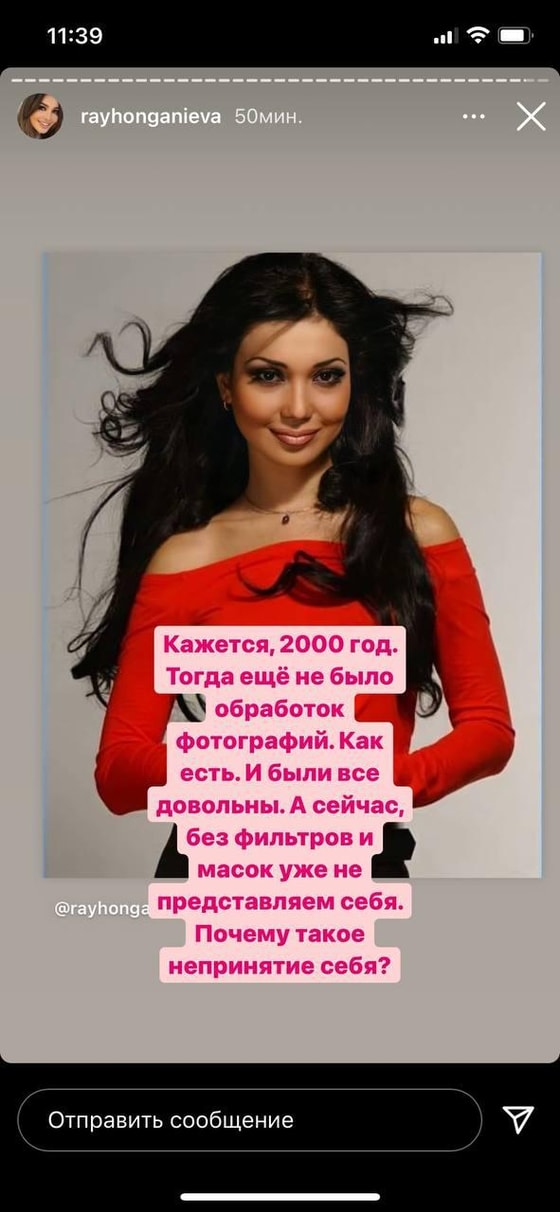 Популярная исполнительница Райхон Ганиева решила вспомнить времена, когда в соцсетях не использовались ещё insta-фильтры и приложения с фотошопом. Отметив, что на сегодняшний день людям сложно принять свою внешность.