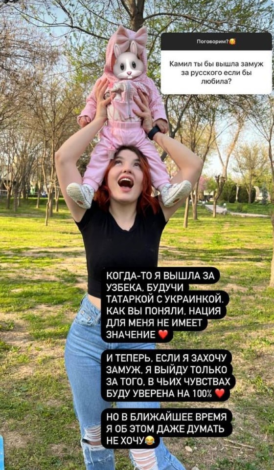 Звезда сериала Qadam и блогер Камила Гимандинова провела в своем Instagram-аккаунте рубрику «вопрос-ответ» и высказалась касательно личной жизни.