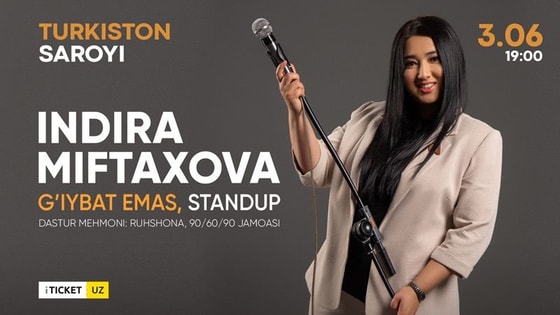3 июня в 19:00 во Дворце искусств «Туркистон» выступит отечественная юмористка Индира Мифтахова.