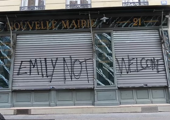 Так, например, на витрине модного магазина они успели написать «Эмили, отвали», «Южный Париж не твой». Также досталось и обувному магазину, который расположен на той же площади, что и дом Эмили.