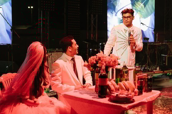 Одним из самых ярких событий второго дня стала свадьба в исполнении LOUD373 под сеты из узбекской эстрады. Пока играла техно версия Тохира Садыкова, на сцену вышел тамада и сделал все «как полагается»: поговорил с аудиторией, вывел бабушку, вывел на сцену жениха и невесту, а она в конце бросила букет. Во время всего туя на экранах шел мемный видеоряд с тиктоками и смешными танцами с разных свадеб.