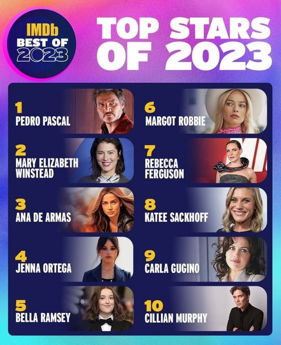 IMDb подвел итоги уходящего года традиционными топами звезд, фильмов и сериалов. Сайт составляет рейтинг на основе просмотров на сайте и отражает, чьи страницы открывали больше всего.