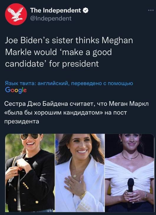 Сестра Джо Байдена считает, что Меган Маркл «была бы хорошим кандидатом» на пост президента, – пишется в издании.