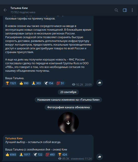 Отметим, что Татьяна переименовала свой Telegram-канал на Татьяна Ким.