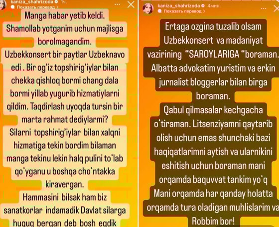 После этого объявления, заявление артистки о выдаче лицензии, поданное 17 февраля 2023 года, было рассмотрено Художественным советом в установленном порядке, а 23 февраля 2023 года ГУ «Узбекконцерт» отказало в выдаче лицензии.