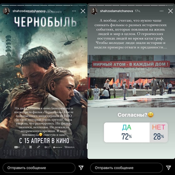 Узбекская актриса Шахзода Матчанова на днях посмотрела фильм «Чернобыль», который ее очень впечатлил.
