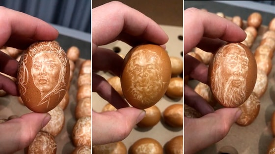 Житель Пекина в корне изменил свою жизнь в 35 лет — он ушел с должности 3D-дизайнера, чтобы полностью посвятить себя необычному ремеслу. Уже несколько лет подряд Ма Чао ежедневно работает с яичной скорлупой, превращая ее в миниатюрные холсты. На сегодняшний день он создал 1040 работ, каждая из которых — часть целой саги, вдохновленной классическим китайским произведением. За эту серию он был удостоен мирового рекорда за самую крупную экспозицию гравированных яиц.