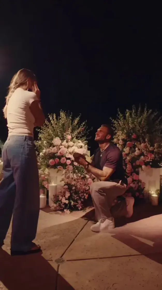 «Ты и я навсегда», — подписала видео спортсменка. В сторис она также продемонстрировала помолвочное кольцо с крупным бриллиантом и с юмором заметила, что «конечно же, понятия не имела о том, что произойдет сегодня вечером», намекая на свой идеальный маникюр.