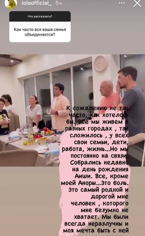 Однако, она сообщила, что раннее они все же смогли собраться на день рождения дочери Аиши. Все было хорошо, но одна из сестер Анора не смогла приехать.