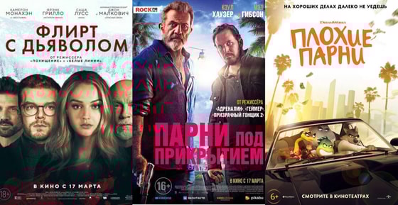 17 марта случилась премьера аж четырех кинокартин: мультфильм «Плохие парни», боевик «Парни под прикрытием», комедия «Шимпанзе» и триллер «Флирт с дьяволом».