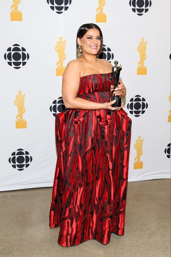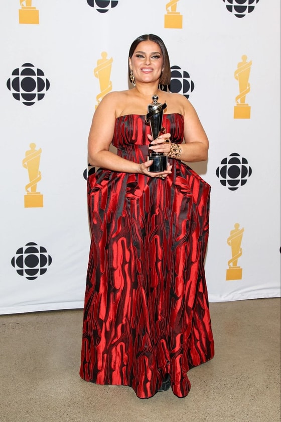 47-летняя звезда выбрала эффектный образ — красно-черное платье с декольте от дизайнера Лесли Хэмптона и новую стрижку боб. В этот же вечер Нелли Фуртадо была торжественно введена в Зал славы канадской музыки.