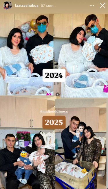 Популярная узбекская телеведущая Лазиза объявила о пополнении в семье, во второй раз став мамой. Она поделилась радостным событием с подписчиками, опубликовав в Stories Instagram трогательный коллаж, где сравнила два самых счастливых момента своей жизни: рождение первого сына в 2024 году и появление на свет второго ребенка в этом году.