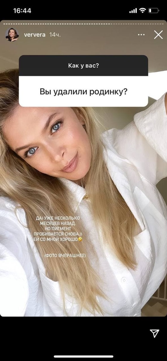 Также Вера ответила на вопрос про удаление родинки под нижней губой.