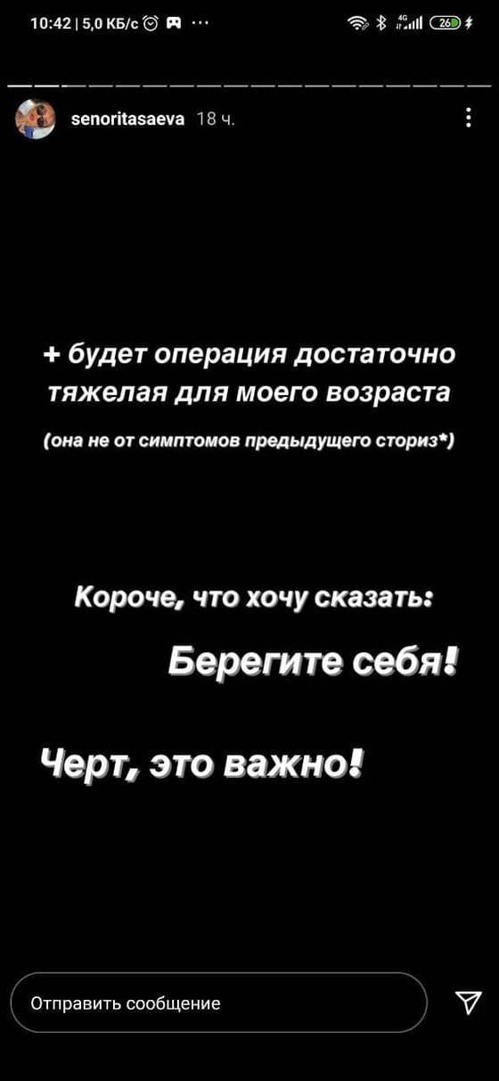 Дина Саева обратилась к своим подписчикам в stories и рассказала, что на три дня уедет в санаторий на срочное лечение. Хотя девушка уже была там в январе 20 дней. В сети сразу же распространились слухи о том, что Мадина лечится от наркотической зависимости. Ее PR-менеджер Максим Задворнов опроверг эту информацию и заявил, что Саева находилась в самом обычном российском санатории.