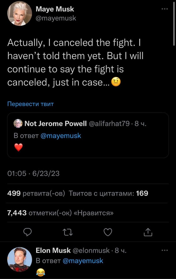 Однако в конфликт вмешалась мама Илона Маска, которая запретила своему сыну драться с Марком Цукербергом.