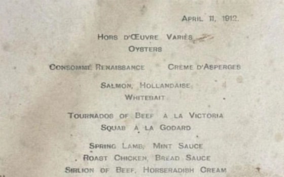 Отметим, спасенное меню подробно описывает первый ужин для пассажиров первого класса на борту, после того как «Титаник» отплыл от берегов.