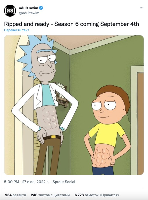 Студия Adult Swim внезапно объявила дату премьеры нового сезона мультсериала «Рик и Морти». Причем первая серия шоу выйдет 4 сентября этого года. Стоит отметить, что студия сопроводила анонс кадром из шоу. Но пока никаких подробностей о нем нет.