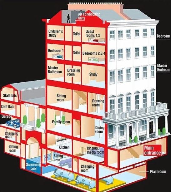 Известно, что в доме предпринимателя имеется 11 спален, а сам особняк украшен обивкой из норки. Помимо этого, в его владения входит имение на юге Франции, которое был построен в 1927 году.