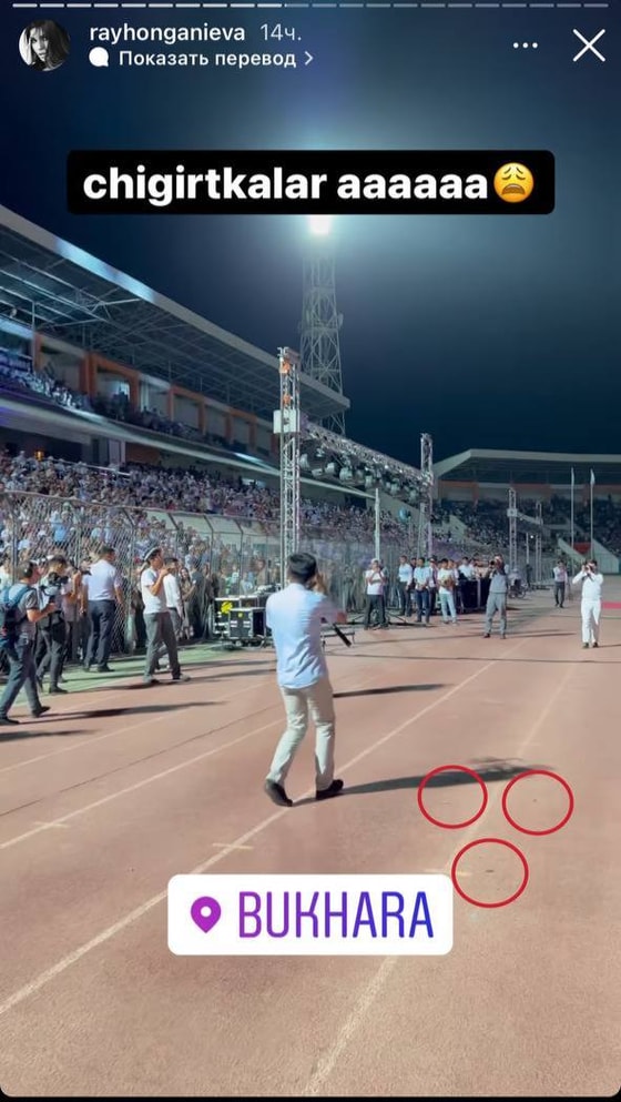 Все бы ничего, но стадион был полон саранчи. Райхон в своих stories показала, как ей пришлось постоянно смотреть под ноги, чтобы не задеть насекомых.